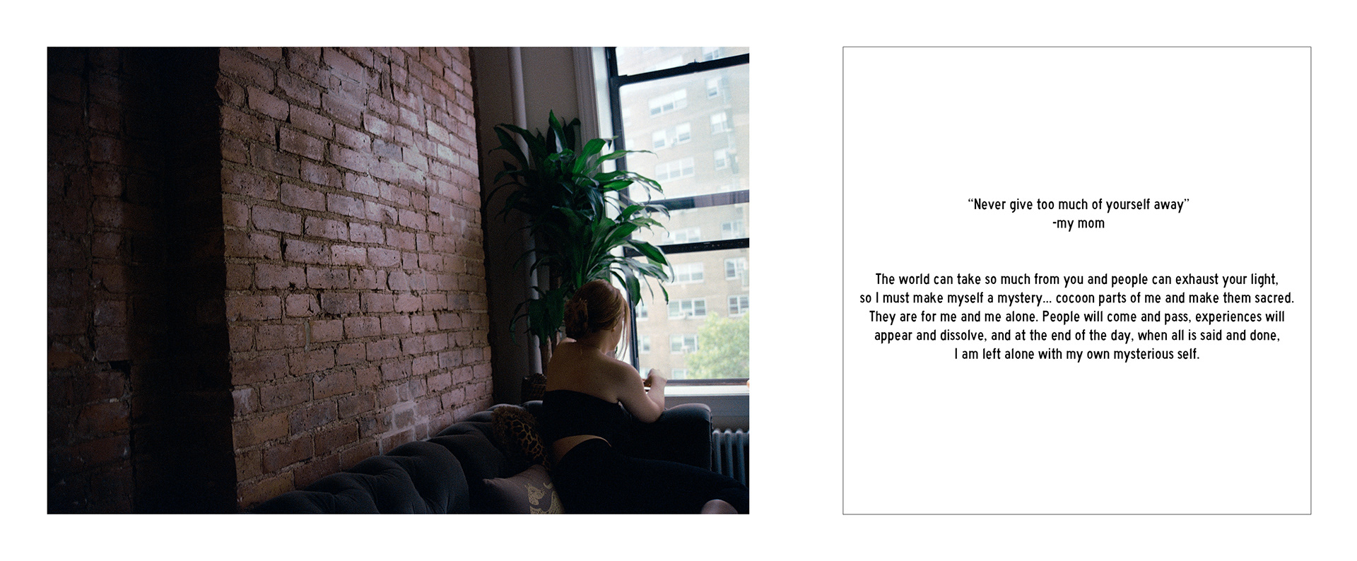 These portraits were collaborations: Each individual wrote their story and we planned their portrait together. After an image was chosen they then rewrote their story as it appears here.